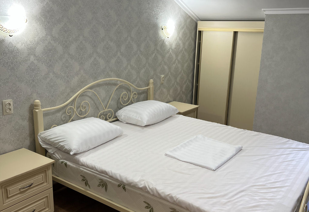 Площадь номера - 22 кв.м. 1 комната. 2 осн. места. В номере: телевизор; кондиционер; душ; тумбочка; 2-спальная кровать; балкон (в части номеров); чайник; шкаф; санузел. 1 доп. место.